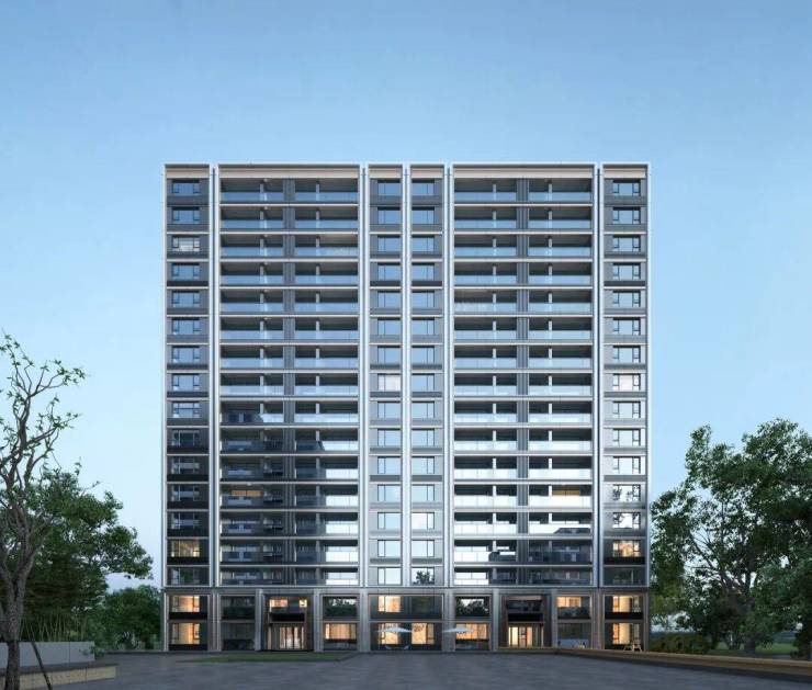作为莘庄首个新规代宅,安高·海印华庭处处践行这份追求。立面采用大面积铝板、石材(一二层局部)与玻璃幕墙,点缀少量真石漆,再加上极简的立面轮廓,使得建筑整体通透轻盈,光影流转间,呈现出现代而璀璨的视觉质感。