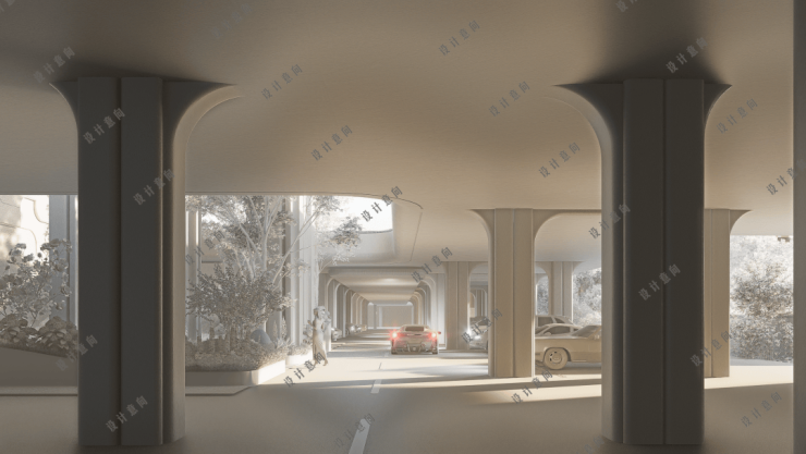 项目上层则为悬浮的“浮岛花园”住宅区,住宅组团如“浮岛花园”悬浮于城市之上,实现真正意义上的人车分流与立体绿化。