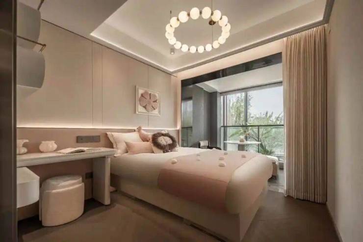 入户门厅以弧形悬浮顶棚为特色,为业主带来柔和温润的归家关怀,让归家的每一步都充满舒适与惬意。