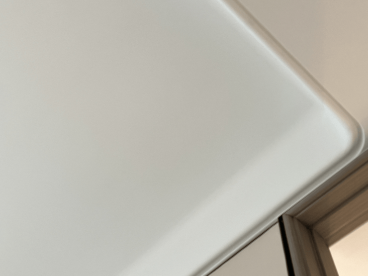 甚至于抬头所见,吊顶都做了多处圆弧形处理——只是为了不过份尖锐,柔化边缘,让视觉看上去多有变化。弧线的协调往往能带来一种独特的、百看不腻的美感。