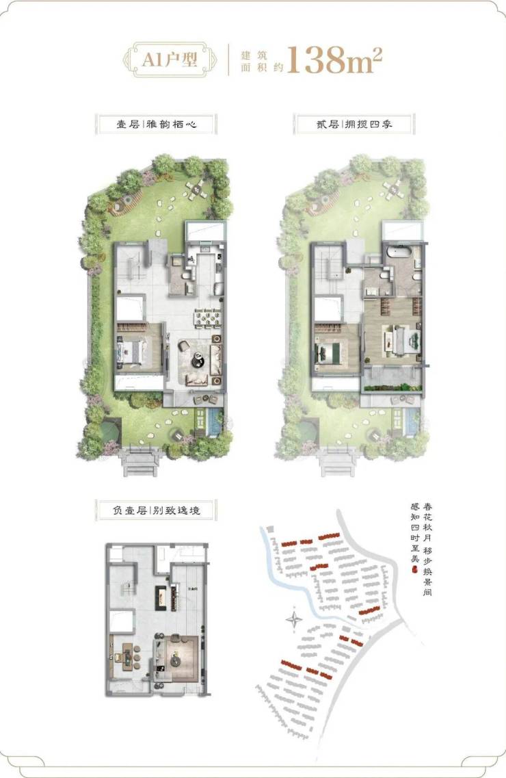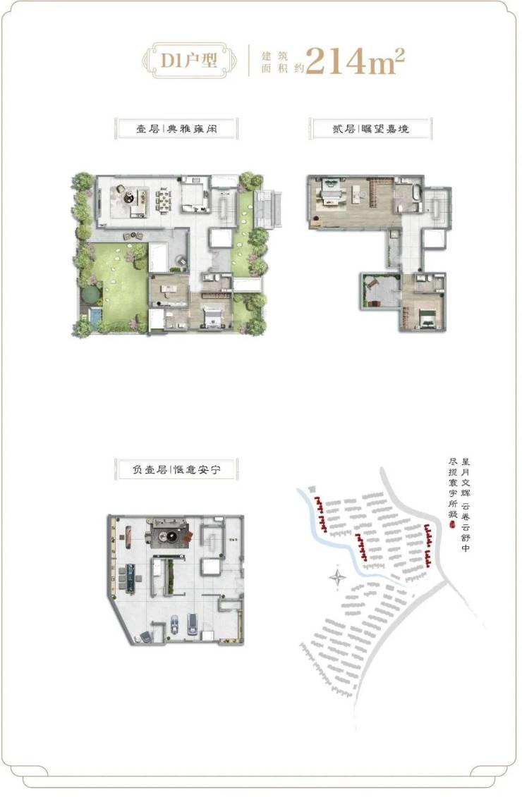 畅想一下入住后的美好场景:在院落里,伺弄花草;在通透的客厅里,三两密友相约,促膝长谈;在露台上,星空夜话;在宽阔的地下室,挥洒兴趣,体验百味人生!