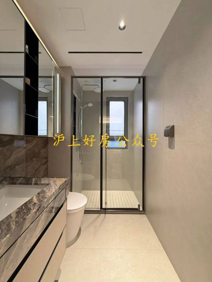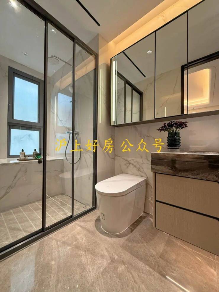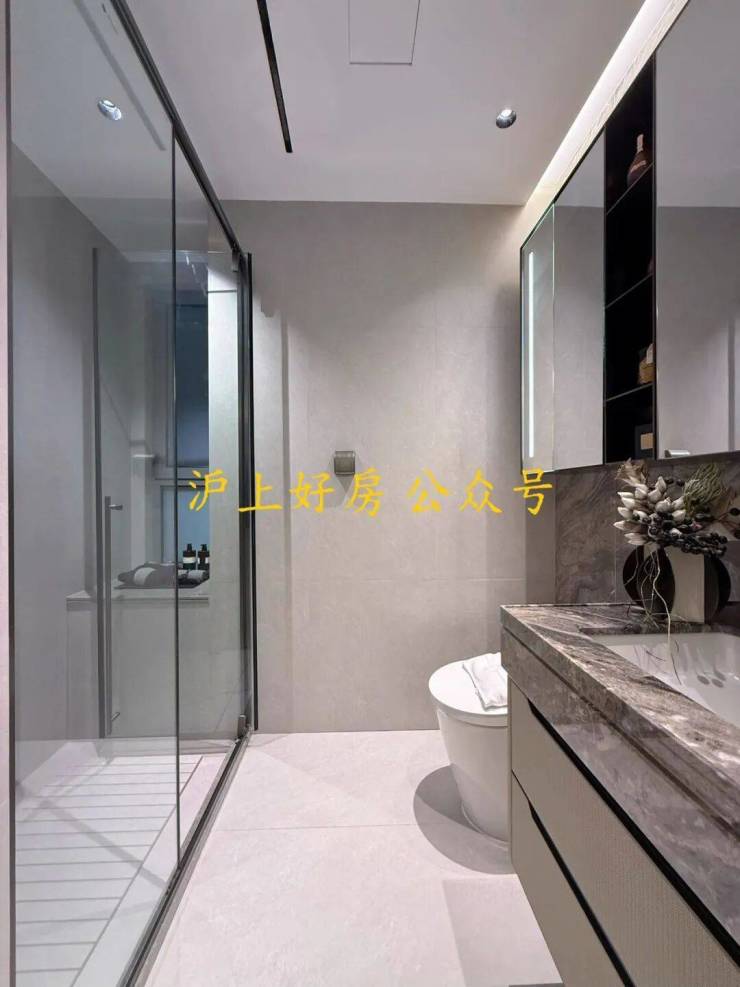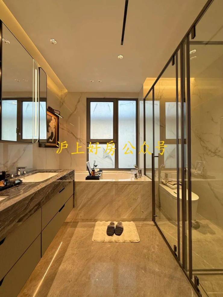 约19米四开间朝南,南北通厅设计,十字中轴洄游动线,演绎云端平墅藏品;双套房全明卫设计,大幅提升居者生活品味与格调;主卧预留步入式宽敞衣帽间,双台盆设计,浴缸冲淋设施齐备,满足男女主人各自所需。