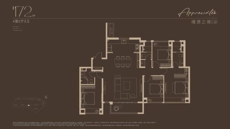 建面约172㎡4房户型,多娃家庭的进阶之选!奢阔尺度尽显家族气度!2梯2户, 子母双开门礼序入户,私密尊崇门厅;约16米四开间朝南,搭配约6米尺度横厅,揽四时风景入怀。