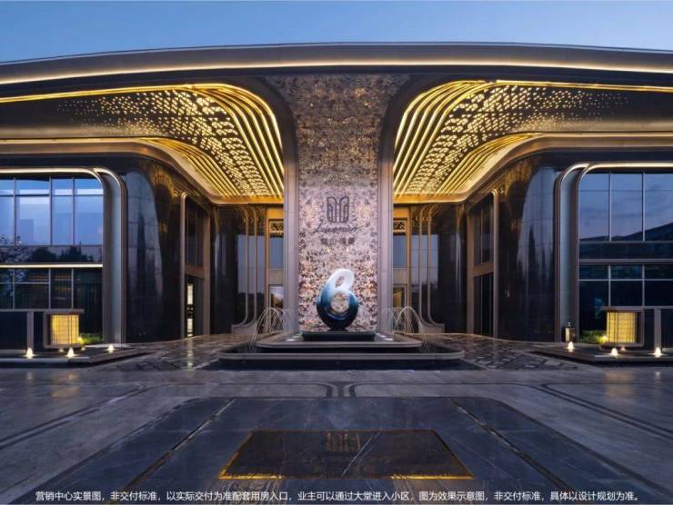 墙体采用约雪山蓝石材,搭配香槟色铝板,普拉达绿石材、安哥拉黑石材、真石漆保温一体板与大面积落地玻璃,叠水小品迎宾启幕归家礼序。景观雕塑,将“缦奢归璞”所追求的圈层礼制得以具象。敕造奢阔实景,境现嘉定主城高阶圈邻。