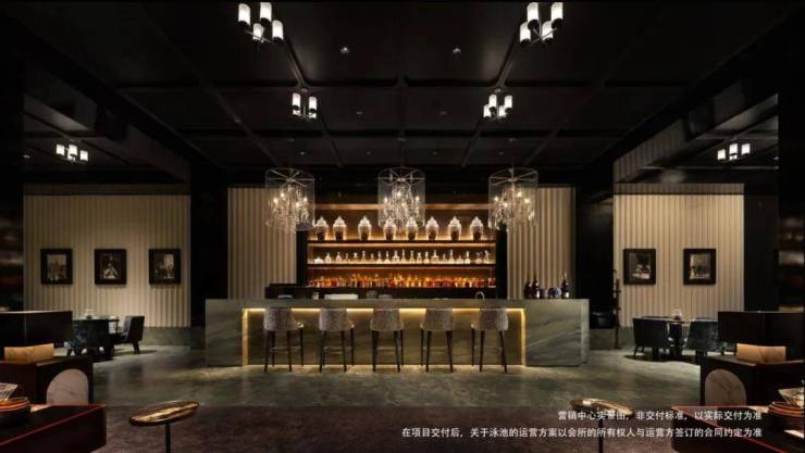 建筑面积约1500m²恒温泳池会所及落差达约10米的水幕下沉式园林的打造,在奢石、臻材等元素的空间应用中,让显贵世家的社交场景,相映于粼粼碧波的柔光之中,于方寸之间游离世外。