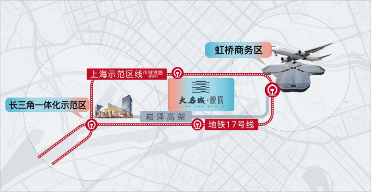 今年年初正式通车的崧泽高架,拉近了青浦居民往来虹桥主城区和市区的距离,称得上是青浦的“南北高架”。大名城·映辰距离崧泽高架赵重公路出口约1.3公里,一线直连虹桥枢纽和市区。