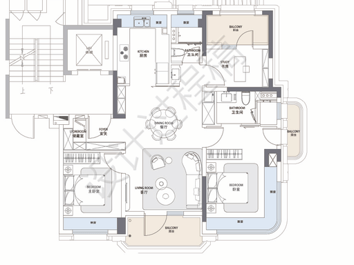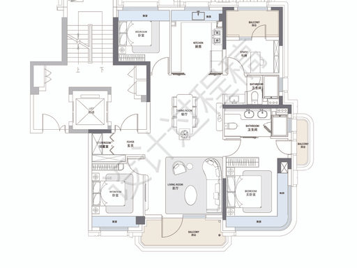 建面约 139㎡四房两卫:顶奢改善户型,采用类一梯一户设计,双开门电梯直达,配备类独立电梯厅,附加空间实用;室内为四叶草布局,公共活动区居中,四个卧室分居四角,兼顾家庭成员独立性;南北双阳台贯通,北侧卧室可将北阳台完整纳入室内;边套主卧设 270 度转角飘窗与一步阳台,主卫双台盆配置,整体使用面积媲美市面 160㎡大平层,是高端改善家庭的理想之选。