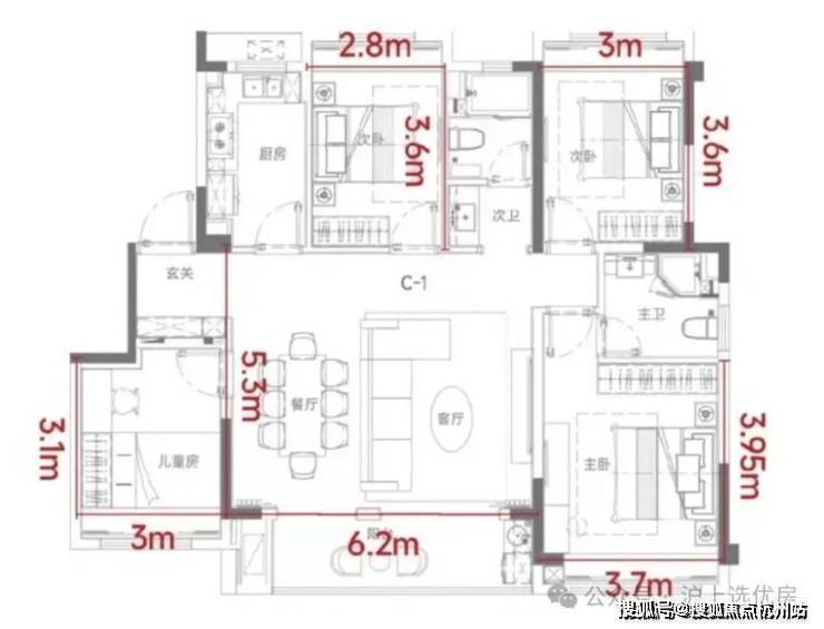 它不仅做到了四房设计,更是做到了6.2米的宽厅,尺度媲美大平层,北向房间还能够放置1.5米的床。