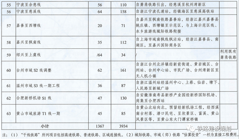 共涉及63项,其中干线铁路24项,城际铁路9项,市域(郊)铁路30项,详单如下: