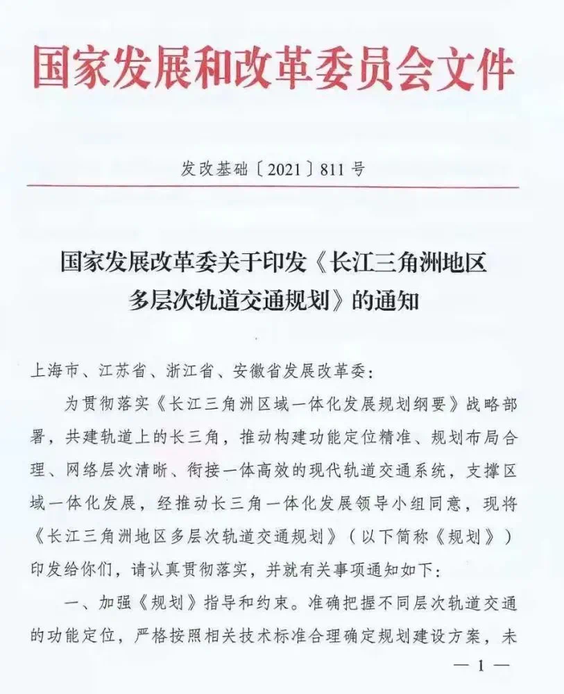 近日,国家发改委正式印发《长江三角洲地区多层次轨道交通规划》。