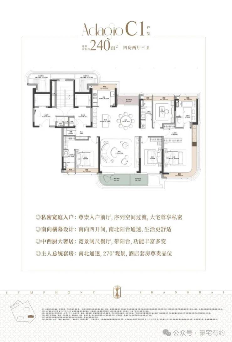 建筑面积约240㎡公园盛幕大宅,10层臻稀小高层,户型空间获得感更高,亲地舒适性更高,近揽公园与繁华天际,上海心中的恒景化作生活的慢调旋律。绿城·潮鸣外滩