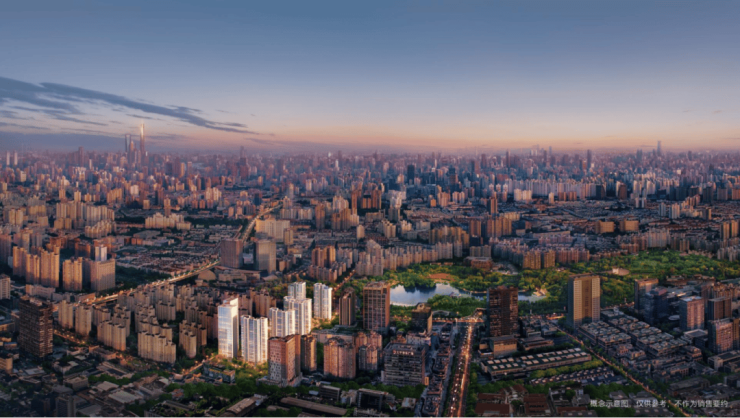 纽约曼哈顿CBD 与中央公园,筑就全球仰望的恒产奇迹;伦敦金融城 CBD与海德公园,上映永不落幕的金贵地脉;上海大宁全域中央公园式CBD,汇集产业、城市、自然三重高浓度资源,成就“黄金三角”价值坐标。中建•玖上琅宸立身“黄金三角”之心,敬献谨此正南向公园观礼台。