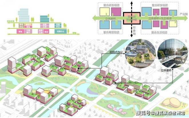 这座逐步崛起的未来之城,未来将重点发展商务办公、科研以及居住功能,规划有商务办公楼、生态住区、学校、公园、文化场馆、科创产业园区等业态。