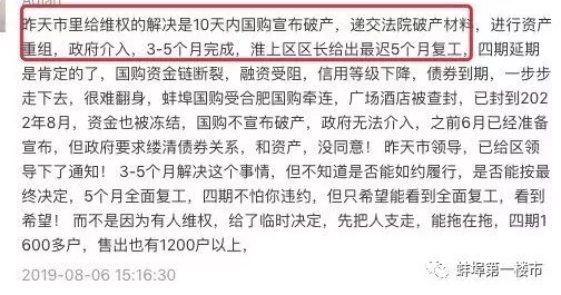 带着疑问,小编也向蚌埠市住建局进行了电话咨询,得到的答复是:蚌埠国购破产消息为真!正在走法律程序!具体宣布破产时间要看法院处理。