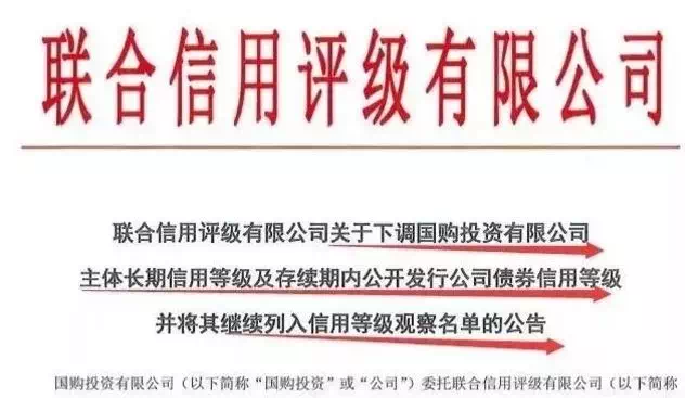 2019年2月1日,由于“16国购01”出现违约,联合信用将国购投资主体及债项信用等级由“B”下调为“C”。