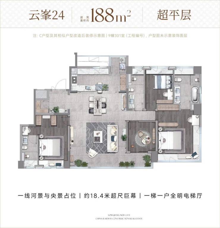 建面约 125㎡-148㎡揽境高层、建面约155-160㎡三面宽叠墅、[云峯24] 建面约188㎡超平层,火热销售中。附全套户型图: