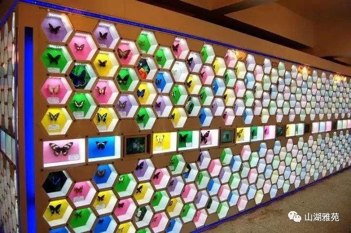 秘境中设立了蝴蝶科普乐园与许愿树 各色珍奇蝴蝶标本挂在展览墙