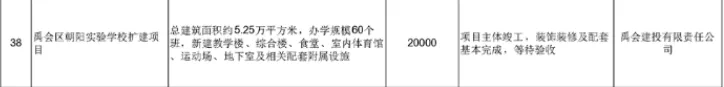 朝阳实验学校扩建项目建设内容和规模:总建筑面积约5.25万平方米,办学规模60个班,新建教学楼、综合楼、食堂、市内体育馆、运动场、地下室及相关配套附属设施;总投资:20000万元项目进展情况:项目主体竣工,装饰装修及配套基本完成,等待验收;