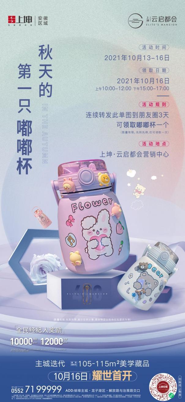 10月13日-16日,凡在朋友圈连续转发以下嘟嘟杯活动海报3天,即可于10月16日上坤·云启都会首开当日,至项目营销中心领取嘟嘟杯一只,数量有限,先到先得,小可爱们在等待您,千万别错过啦!