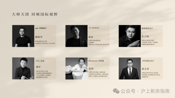 聚集享誉业界的团队——gad杰地设计、31.DESIGN、GVL怡境、德森建筑设计、NNS纳沃设计、Bluemoon布鲁盟