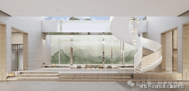 步入 庭院 ,精致会客厅搭配匆匆绿意和层叠水院,颇具层次感的美景让归家的业主瞬间放松,卸下一天的疲惫,也深度诠释了项目 归家即是度假开始 的设计理念!