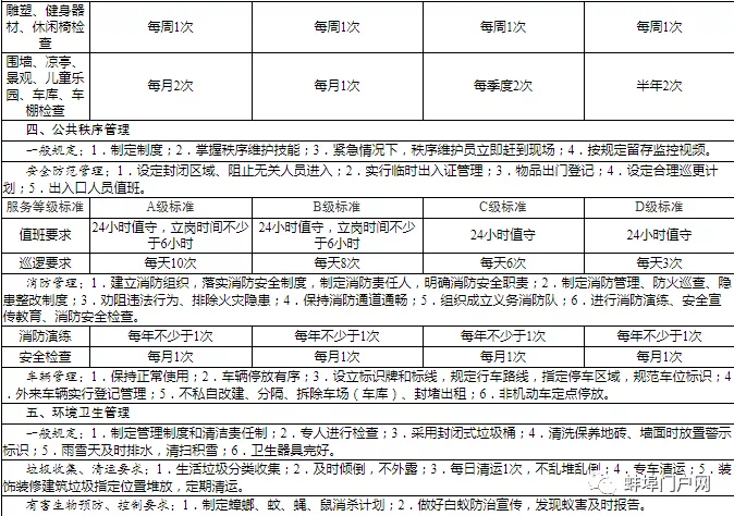 较新公布!蚌埠四级物业标准的划分细则出炉!