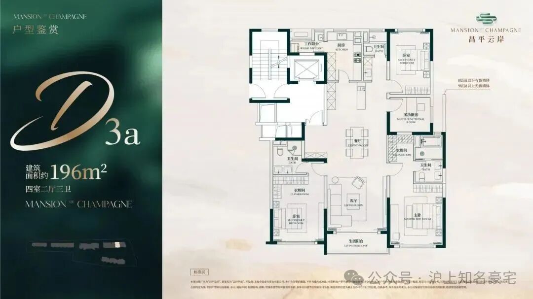 此户型最靠近苏州河!特地设计了270度转角阳台,直面苏州河一线景观!4个套房设计,尊崇感十足!此户型仅有6套,珍藏属性拉满!