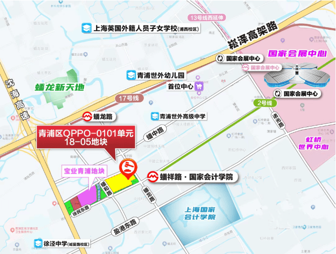 地块位于青浦徐泾板块,紧邻2号线蟠祥路站,北面邻近17号线蟠龙路站。地块东至蟠龙路,南至徐民东路,西至蟠和路,北至会恒路。出让面积38029.65㎡,容积率2.2。
