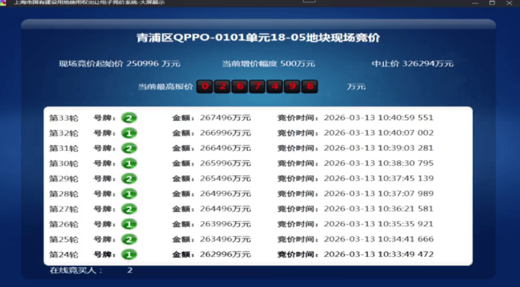 3月13日,2026第一批次土拍举行,绿城经过33轮竞价摘得青浦徐泾地块,成交总价267496万元,溢价率6.57%,住宅楼板价31972元/㎡。该地块也是本轮土拍中唯一的溢价成交地块。绿城VS宝业!徐泾改善你选谁?