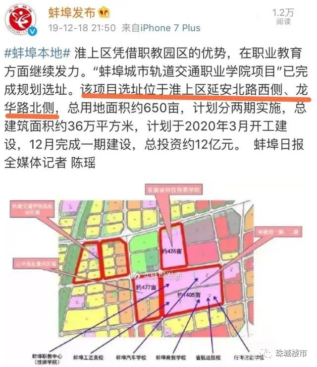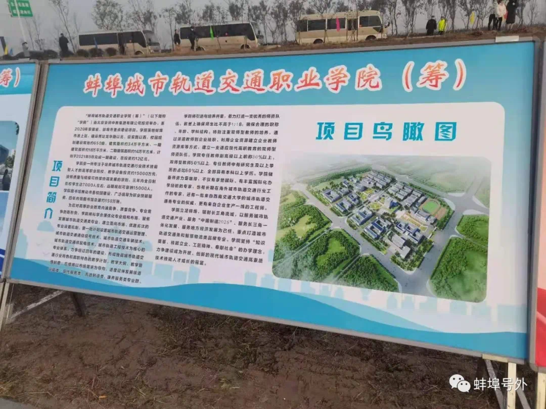 2020年12月该小区已开工建设;蚌埠城市轨道交通职业学院项目规划建设用地650亩,建筑面积约34万平方米,计划于2021年9月完成一期建设,总投资约12亿元,学院旨在打造一所专注于培养城市轨道交通行业技能型人才的高等职业院校,建成后计划招收学生7000人。