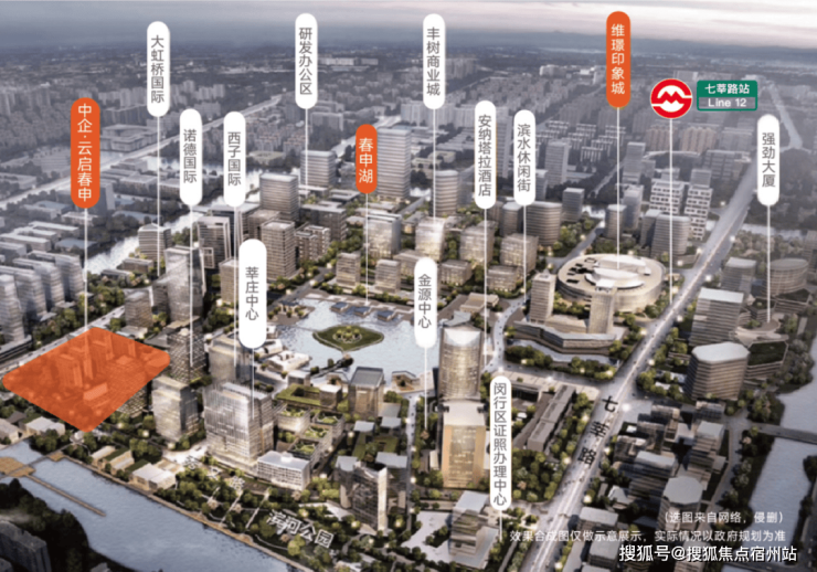 商业方面,「中企云启春申」直线距离12号线七莘路站地铁上盖综合体维璟印象城仅约600米。