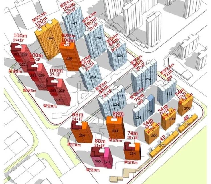 项目概况:7栋百米高层(28-32层)、1栋25层83米高住宅和1栋26层86米高住宅组成,整体容积率我觉得是比较大的,这也是滨江住宅的常态。