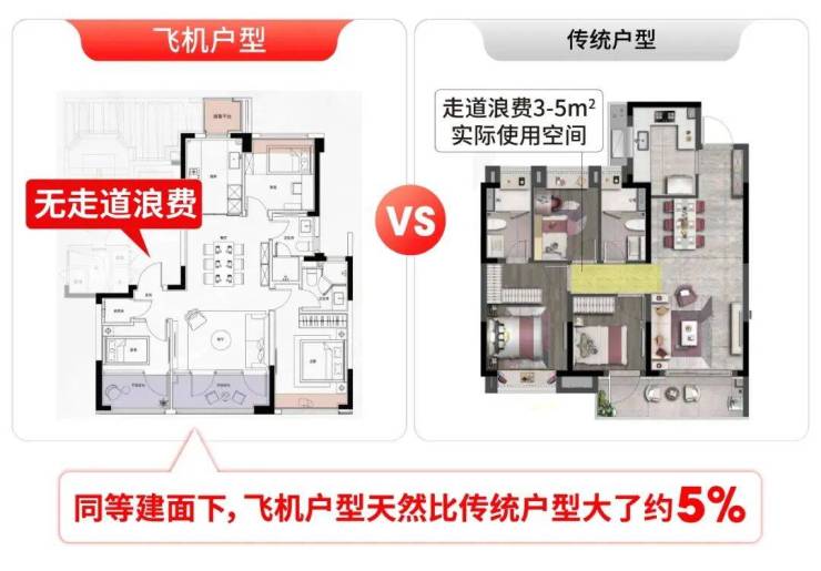 这份空间利用率的绝对优势,是传统户型无论怎么优化细节、卷面宽参数,都无法追赶的天生鸿沟。