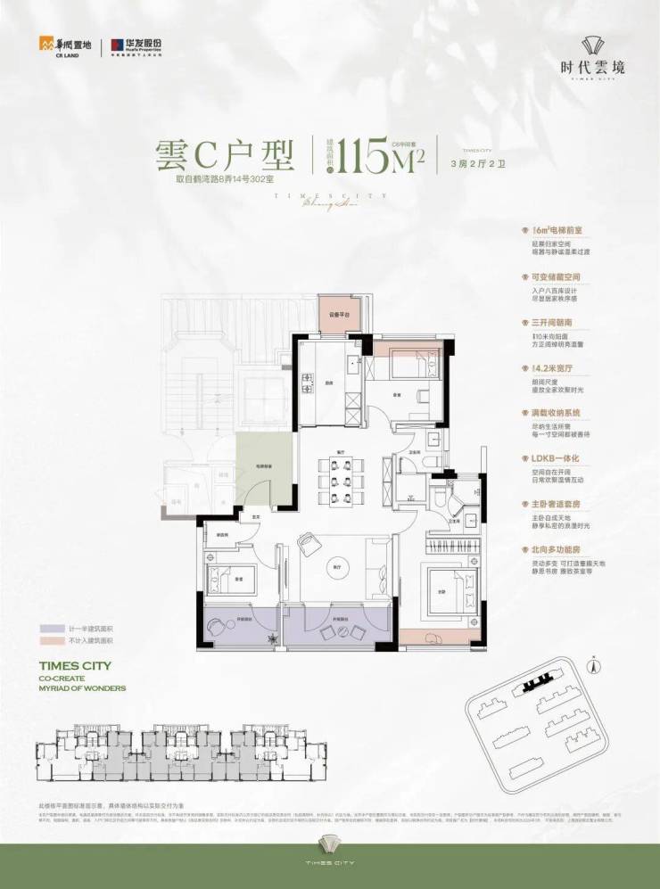 而时代雲境的建面约115㎡户型,完美避开了这片内卷红海,在几乎空白的赛道里,打造了独一份的产品。