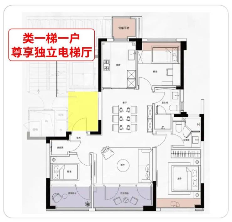 而时代雲境的类一梯一户设计,为每户预留了独立的电梯厅。