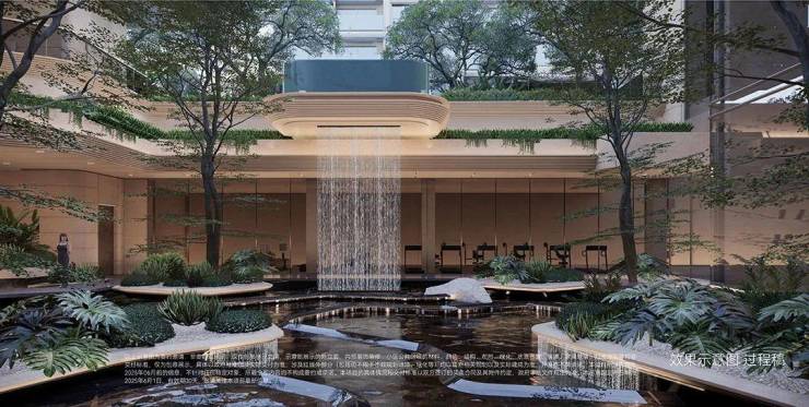 •下沉峡谷:约420㎡丰富层次立体下沉庭院,区域首现悬浮水池,搭配4.3米飞瀑,塑造沉浸式度假感受。