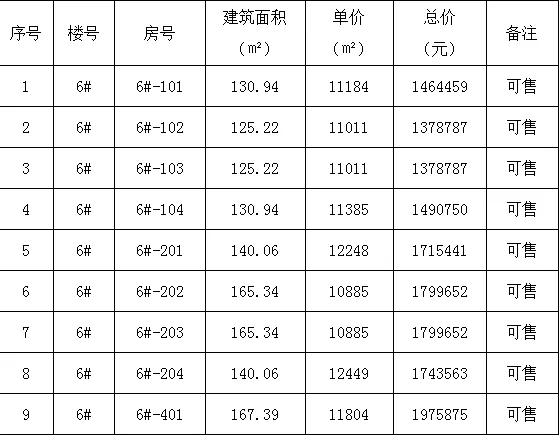 销售总面积:1612.2 ㎡房地产开发企业名称 :安徽中景置业有限公司 座落位置: 黄山大道南侧、迎河路东侧 销售总金额:18703214 元建筑结构: 钢混结构 平均价格: 11601.05 元/㎡