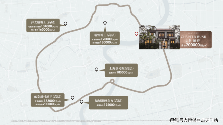 绝版价格:相较近日虹口高层最高单价18.5万/㎡,保利·外滩序18万/㎡起的单价显现出显著价格洼地效应。