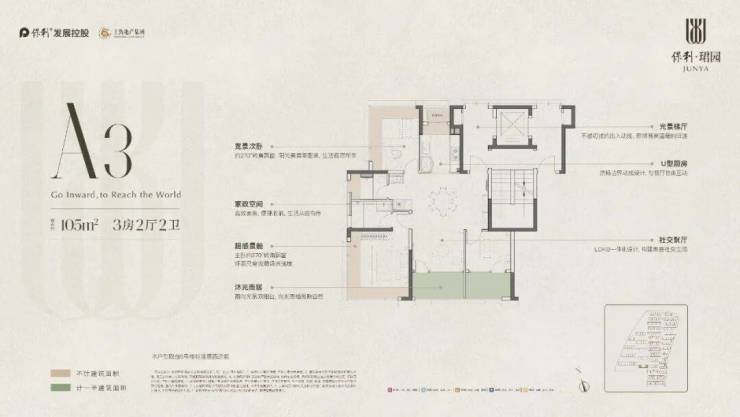 北侧还预留了可以改造的家政空间,随着家庭成长可以随时调整功能。这个户型算是既有当下的尺度感,又留了未来的可能性。