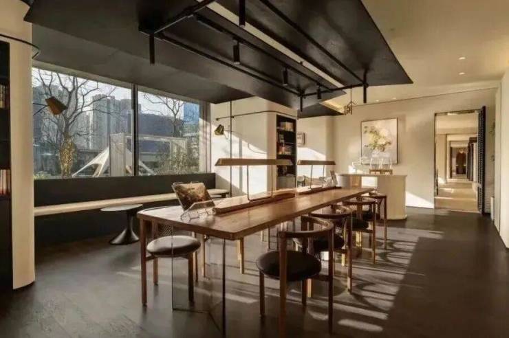 通过全景落地窗设计,让自然光与公园景致渗透每个角落,运动、会客、阅读皆在绿意环绕中进行。
