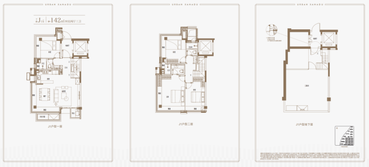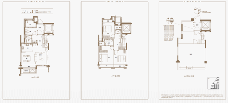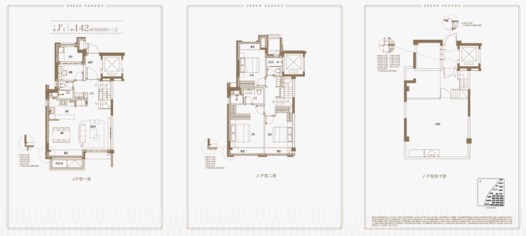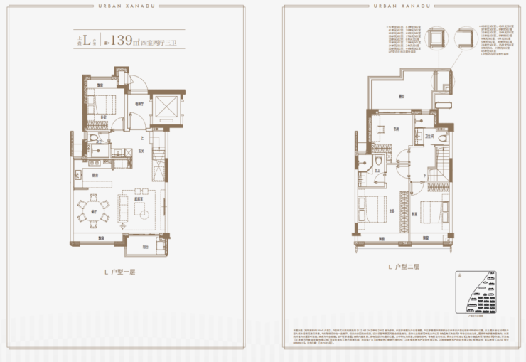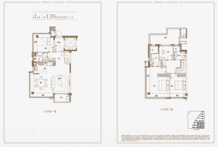 建面约139㎡上叠户型,三层是会客区,四层是居住区,阳台+露台+多个飘窗设计,附加空间非常大,在别墅类产品中实属罕见!
