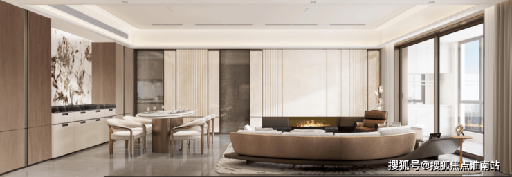 为匹配32席尊享居家场景,在户型设计之初,设计团队怀抱初心奔赴澳门,实地考察当地最新酒店户型设计理念,合理规划约200㎡功能布局,将客厅打造成近约40㎡方厅,旨为菁英圈层社交。