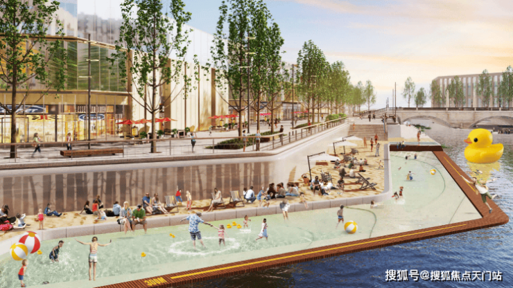 从规划效果图来看,项目正对的“三林湾”最大特色,可能就是规划有一个类似翠湖太平桥公园,户外戏水+人工湖的公共空间。