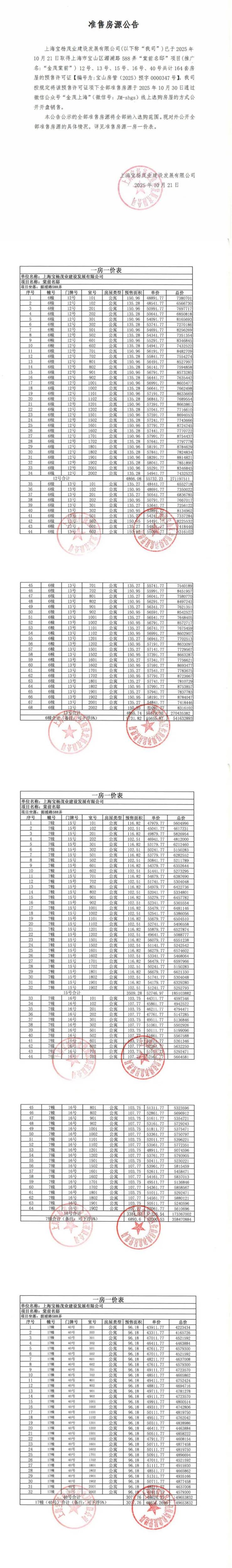 2024年12月30日,金茂&宝冶&杨行城建于2024年八批次土拍中以31.16亿竞得宝山站商住组合地块(宝山区BSP0-0801单元13A-01、02aA-04地块),楼面价9058元/㎡,住宅中小套型占比50%,集采价2500元/㎡。