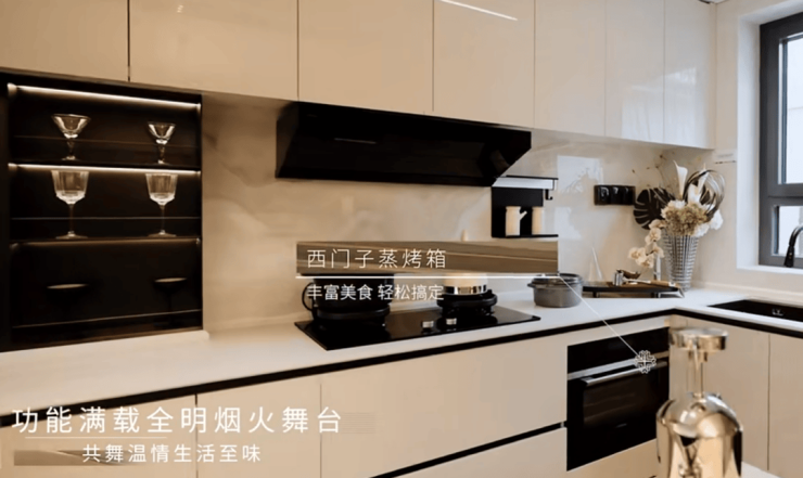 另外,厨房在四件套基础上部分额外加配西门子蒸烤一体箱,相当于配齐了厨电五件套。