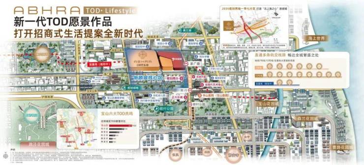 商业配套:项目自带约17.5万方大体量商业,作为7号线潘广路TOD综合体项目,沿线还聚集了多个商业综合体——龙湖北城天街、绿地正大缤纷城等,商业体量超过35万方。加之龙湖宝山天街对面一大块的待开发商办用地。未来整个区域的高端商业体量。