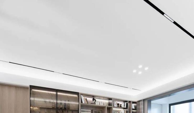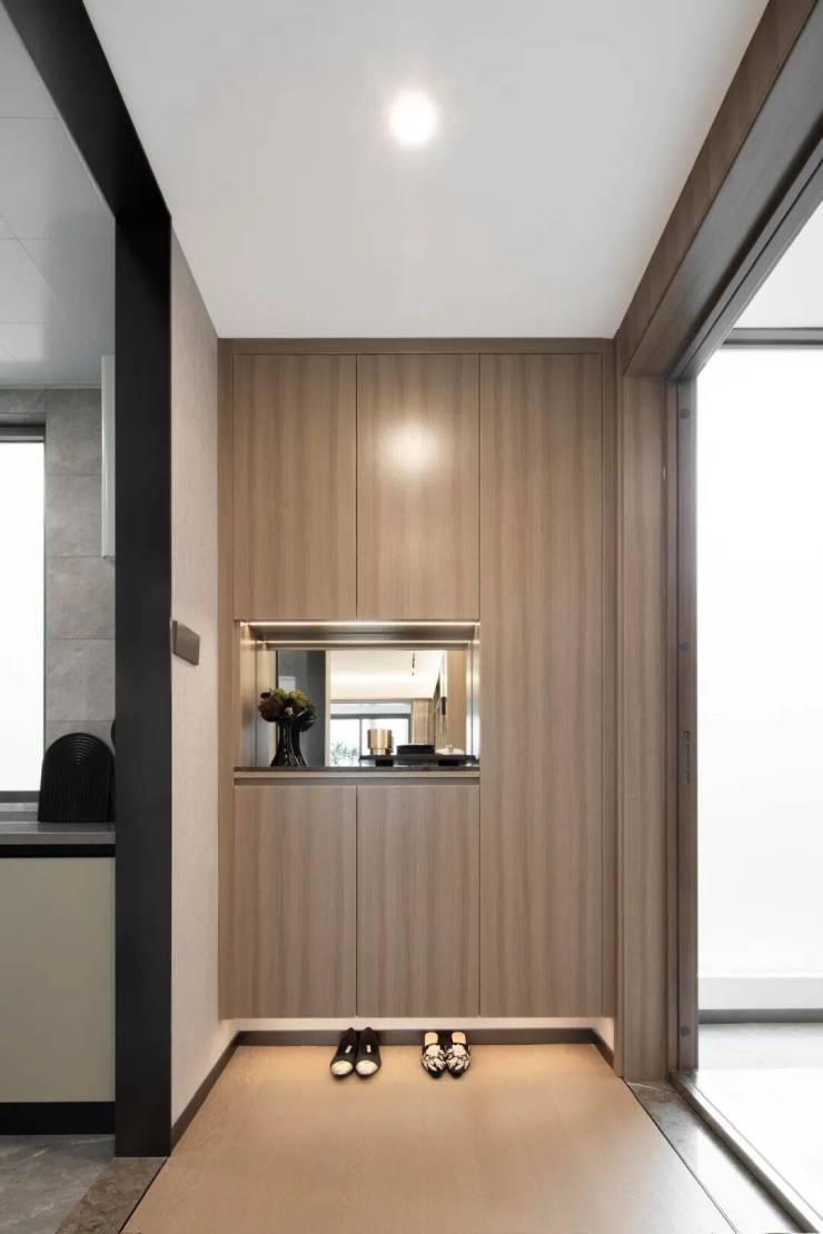比如入户的玄关柜门也是交标、客厅顶部也做了吊顶无主灯的设计,为后续装修省了很多力。