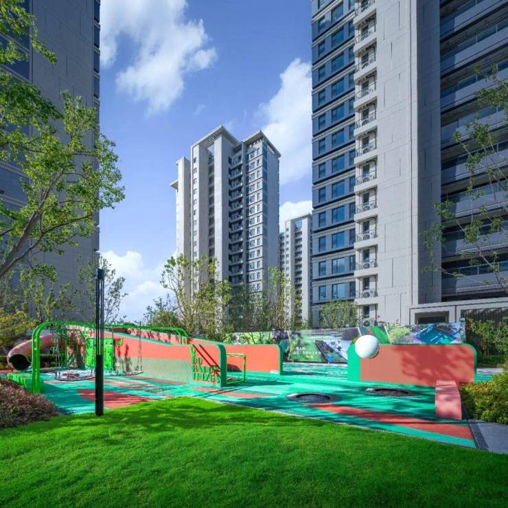 除了这个中央花园,深业还打造了同样大面积的其他中央景观区,甚至还自然地融入了诸多休闲场景,连儿童活动区、青年活动区等场景都营造得格外生动,成为了景观中相当亮眼的组成。