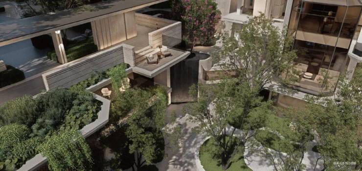 开创性的将整个社区抬升约5.4米,构筑起宏大、连续的“浮岛私域”空间。隔绝地面喧嚣与潮气,同时为公区释放更多空间,实现视野上的广阔舒展与日常的静谧舒适。