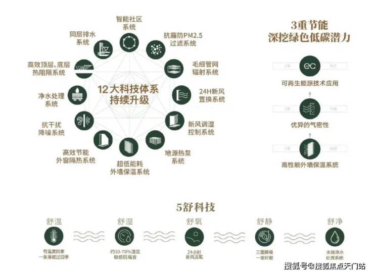 项目深度进阶 12大科技系统、三重节能与五舒科技 等技术核心,以 更智慧化、定制化、生活化的品质空间 ,适配高净值客群追求品质的居住需求。